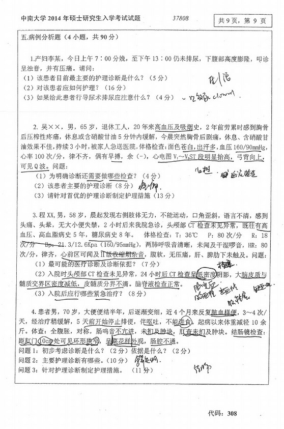 专业课考研资料 本站小编 免费考研网 2020-01-08选择都是案例分析,都特别长,涉及内外基导的方方面面。有一定难度。尤其要重视护理学导论,考了很多题。(然而我没看(︵;`)所以都是编的)