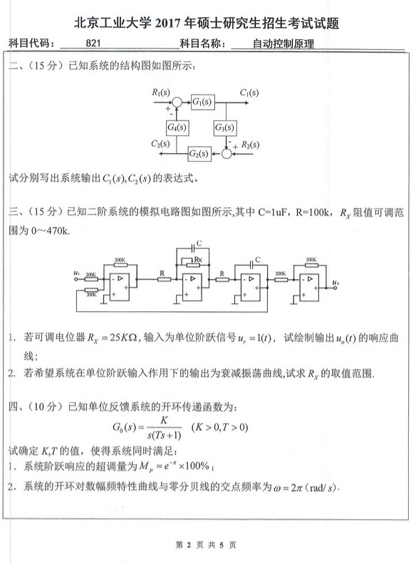 2017北京工业大学821自动控制原理考研试题(2)