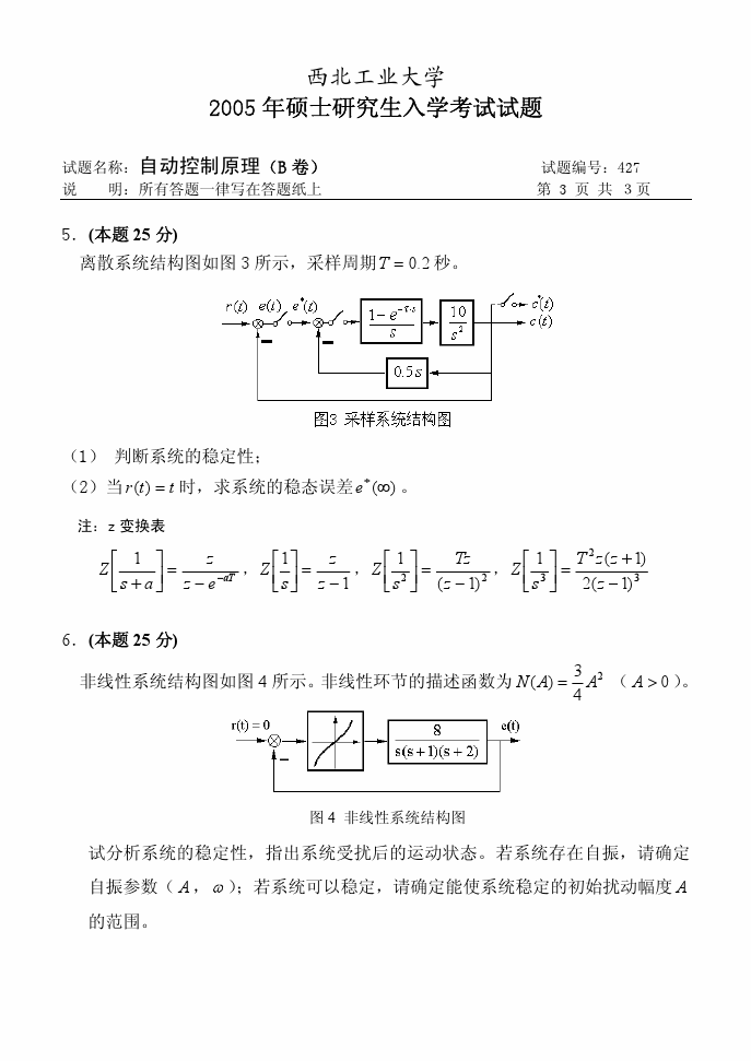 西北工业大学2001-2010自动控制原理考研试题(15)