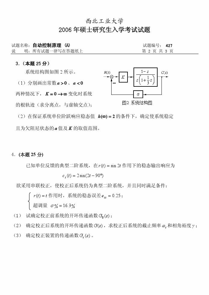 西北工业大学2001-2010自动控制原理考研试题(17)