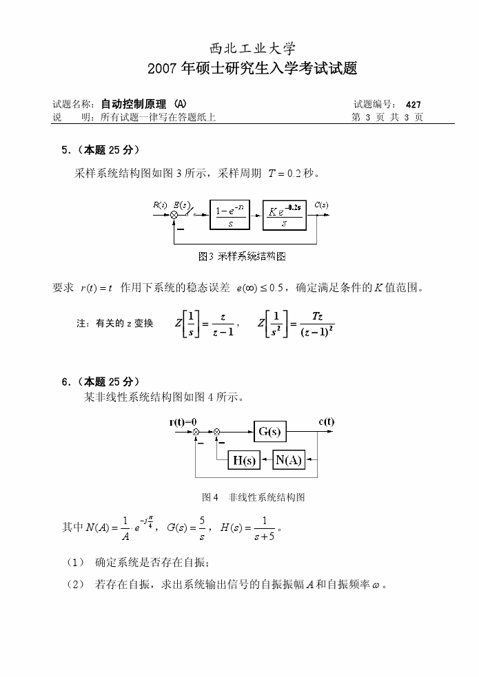 西北工业大学2001-2010自动控制原理考研试题(21)