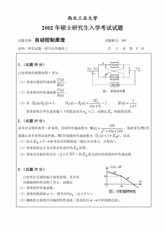 西北工业大学2001-2010自动控制原理考研试题(4)