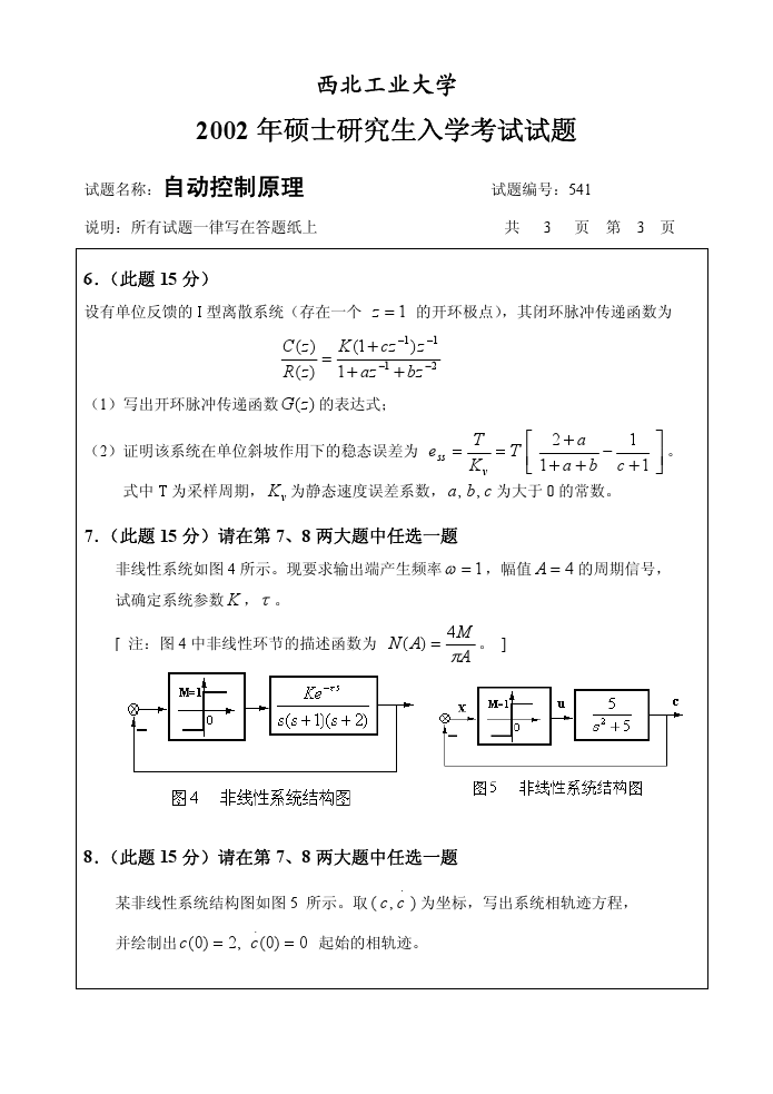 西北工业大学2001-2010自动控制原理考研试题(6)
