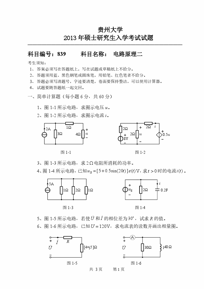 2000-2014年贵州大学电路考研真题与答案解析(68)