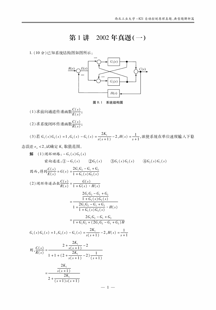 西北工业大学2002-2006考研821自动控制原理真题典型题解析详细答案