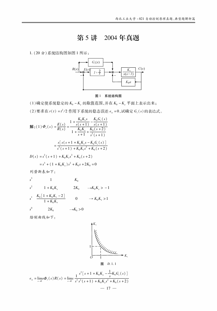 西北工业大学2002-2006考研821自动控制原理真题典型题解析详细答案(17)