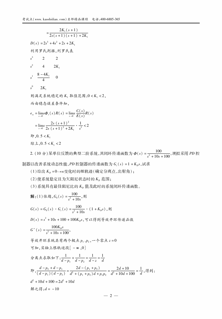 西北工业大学2002-2006考研821自动控制原理真题典型题解析详细答案(2)