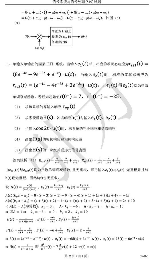 2011年上海交通大学819信号系统与信号处理考研真题答案(2)