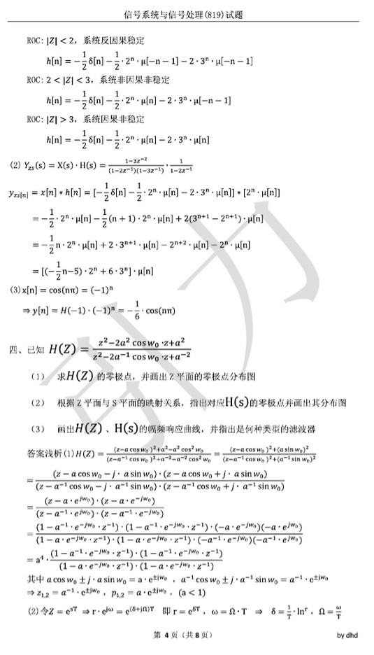 2011年上海交通大学819信号系统与信号处理考研真题答案(4)