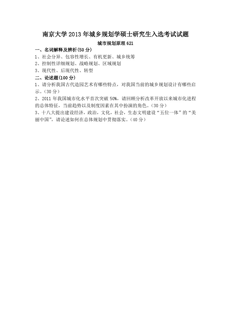 2001-2014南京大学城市规划原理621+城市规划基础356考研试题(18)