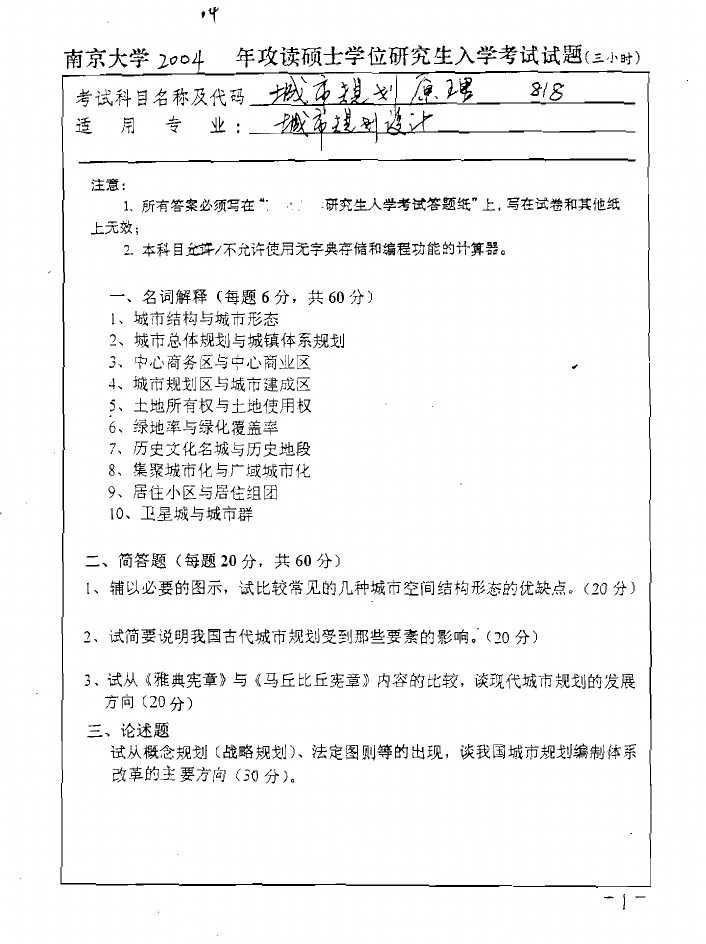 2001-2014南京大学城市规划原理621+城市规划基础356考研试题(4)