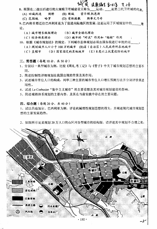 • 2004-2012西北大学城市规划原理+中外城建史考研试题