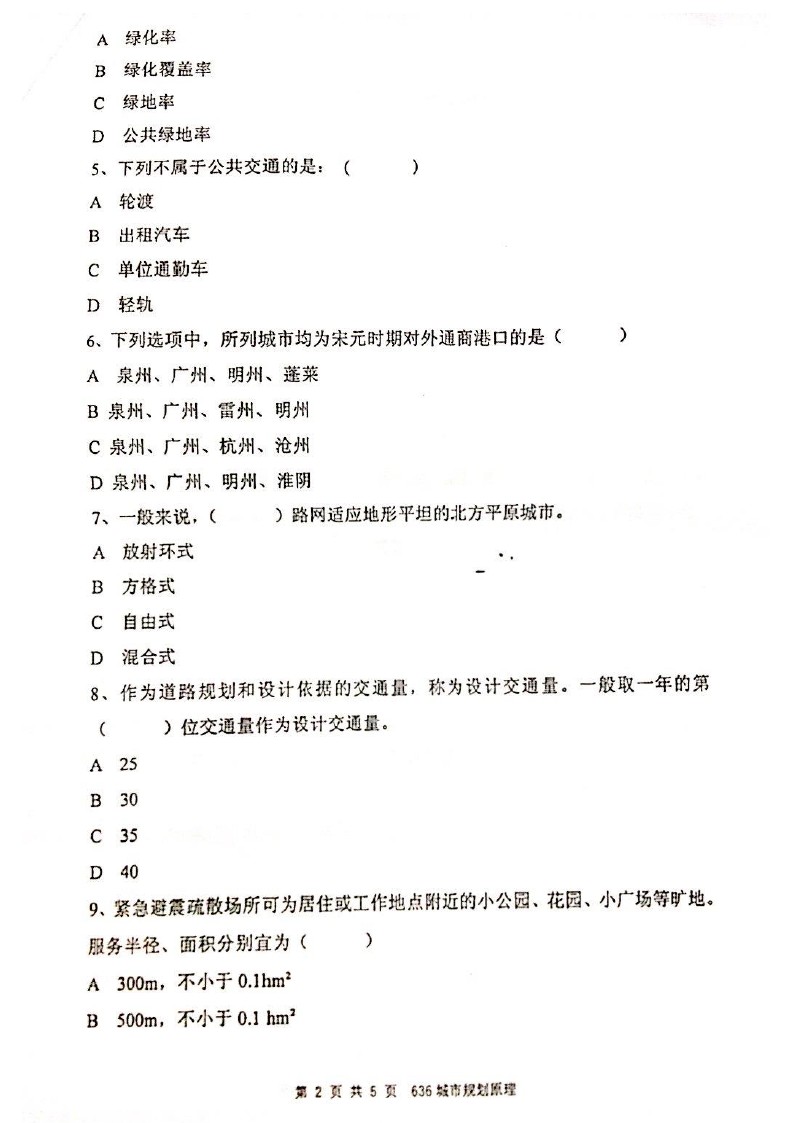 • 2005-2010年武汉大学城市规划理论考研真题