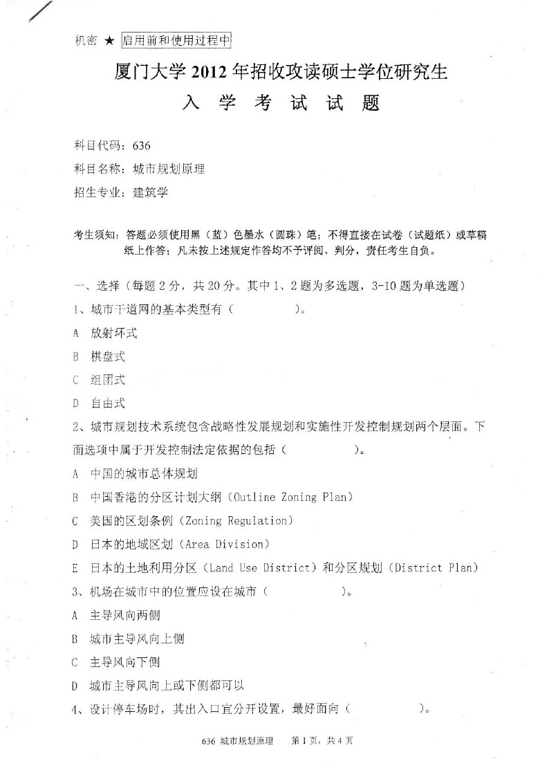 • 2004-2012西北大学城市规划原理+中外城建史考研试题