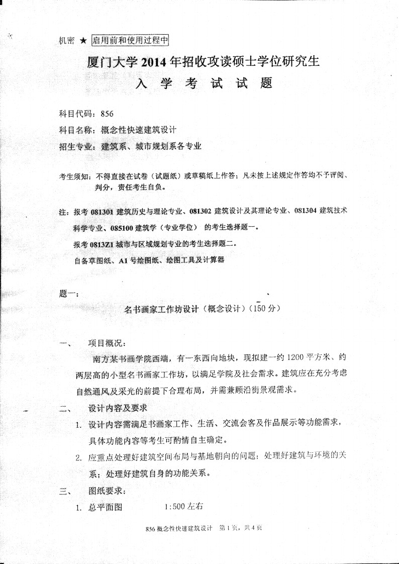 厦门大学2014-2010概念性快速建筑设计856考研试题(16)