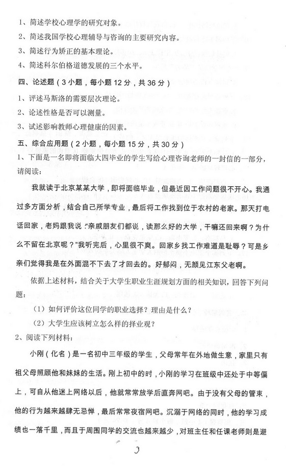 西北师范大学2015年843学生心理健康教育与辅导考研真题试卷(3)