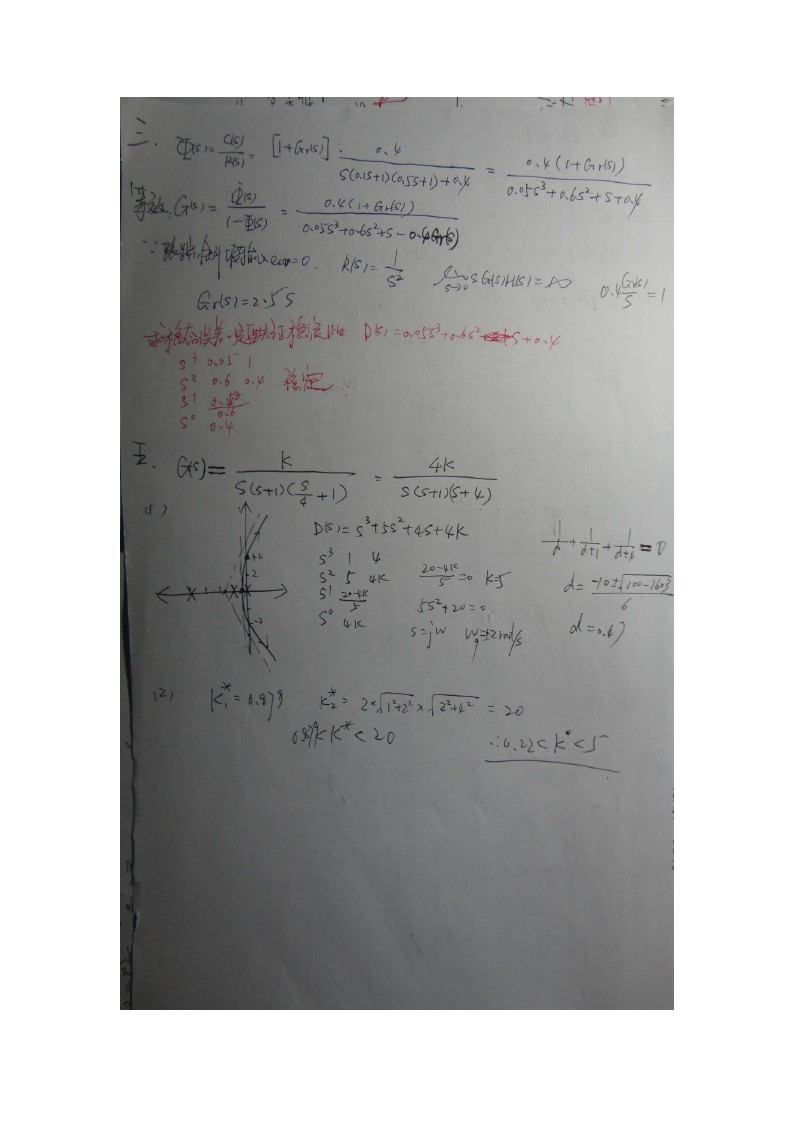 1画不同k值的幅频图 2求劳斯判据 3求三阶系统5%通频带 4 z变换圆不同点问意义 5简单传递函数 6带运放传递函数 7求误差函数 8求二阶系统校正 我他妈日了狗,最难的题放前面,后面四道送分题五分钟一个 ...