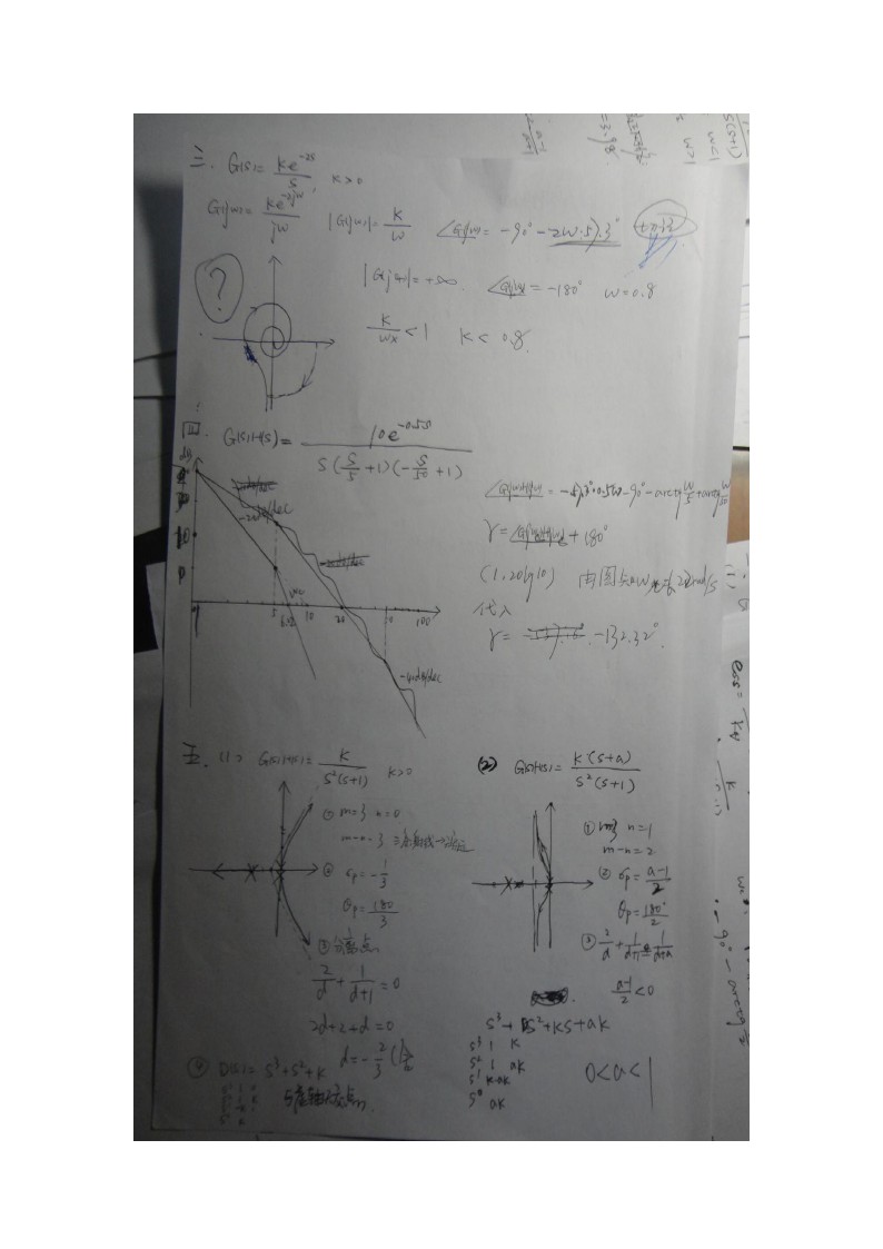1画不同k值的幅频图 2求劳斯判据 3求三阶系统5%通频带 4 z变换圆不同点问意义 5简单传递函数 6带运放传递函数 7求误差函数 8求二阶系统校正 我他妈日了狗,最难的题放前面,后面四道送分题五分钟一个 ...