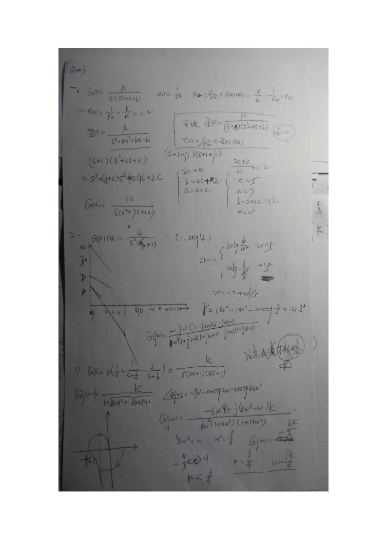 1画不同k值的幅频图 2求劳斯判据 3求三阶系统5%通频带 4 z变换圆不同点问意义 5简单传递函数 6带运放传递函数 7求误差函数 8求二阶系统校正 我他妈日了狗,最难的题放前面,后面四道送分题五分钟一个 ...