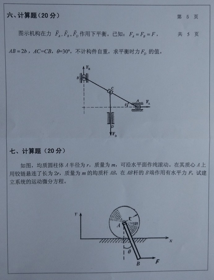 哈尔滨工业大学2014年808理论力学考试试题(5)