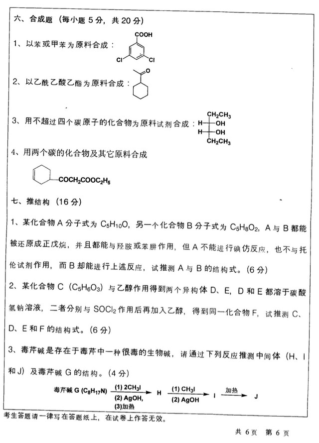 • 2014年-2015中国科学院大学有机化学硕士研究生入学考试题