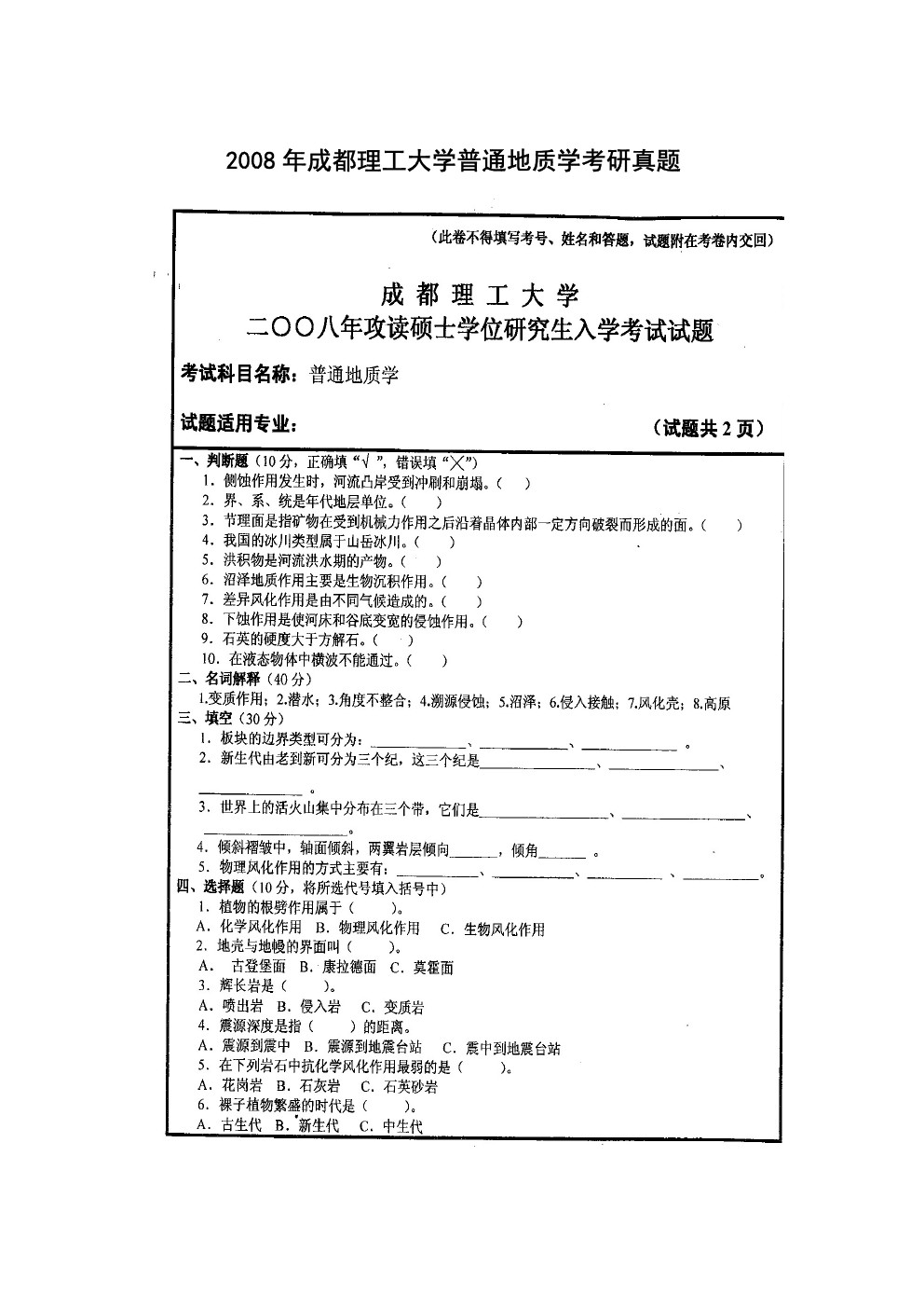 成都理工大学2014-2004普通地质学考研试题真题(15)