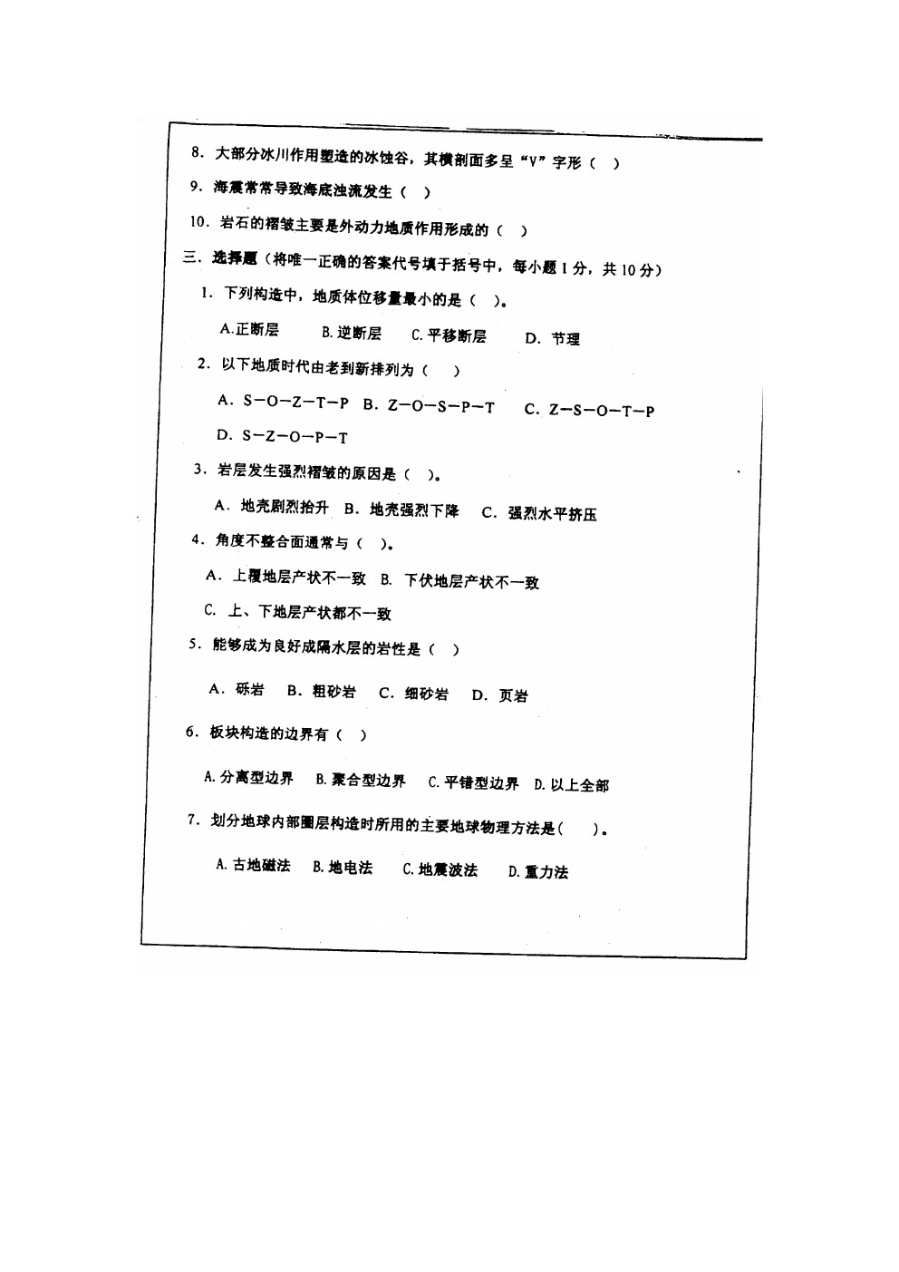 成都理工大学2014-2004普通地质学考研试题真题(6)