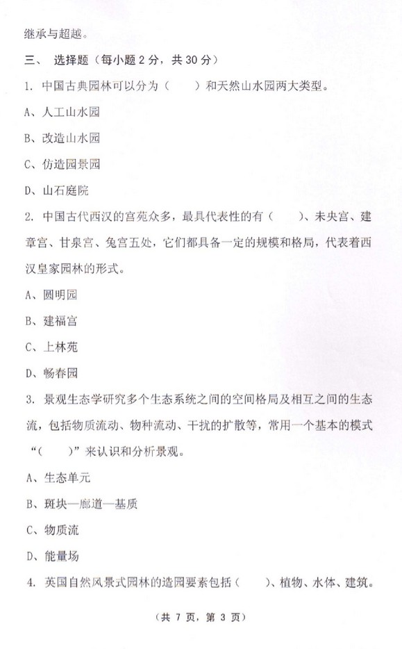 • 2020北京林业大学风景园林学(学硕)考研真题