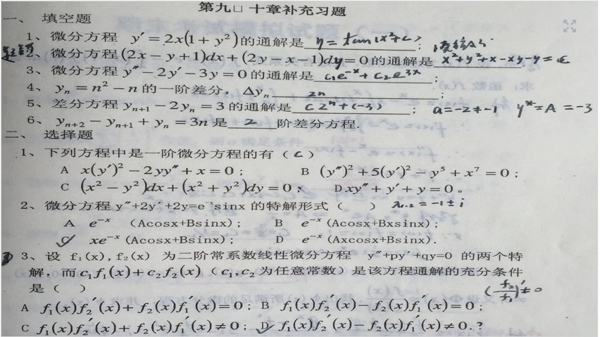 微积分高等数学朱来义版习题册第9-10章补充题带答案