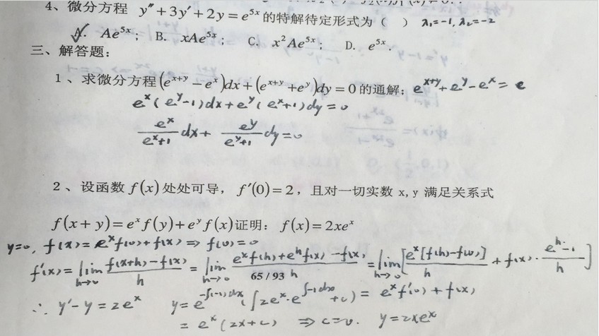 微积分高等数学朱来义版习题册第9-10章补充题带答案(2)