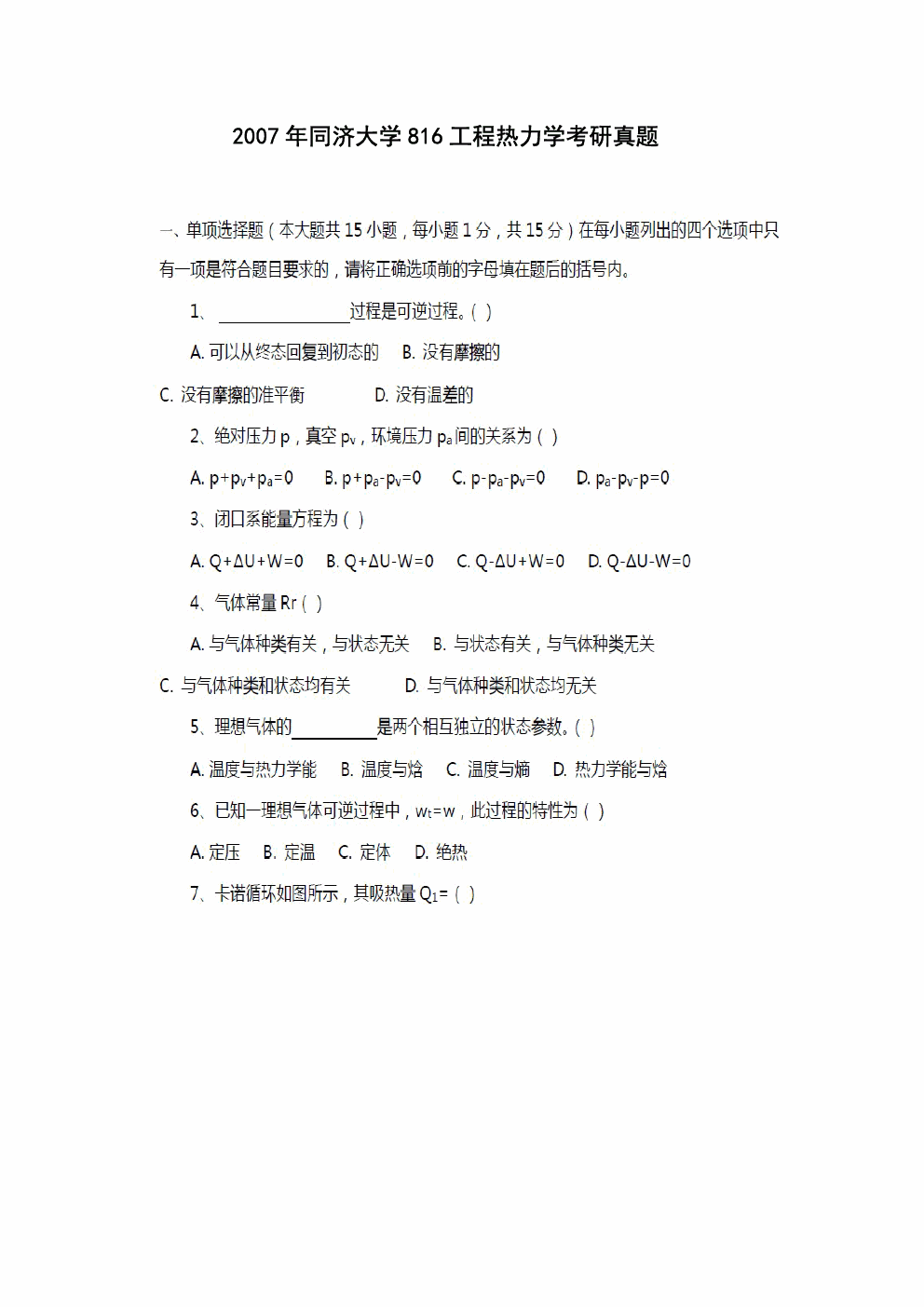 同济大学2014-1998工程热力学816考研真题试题(21)