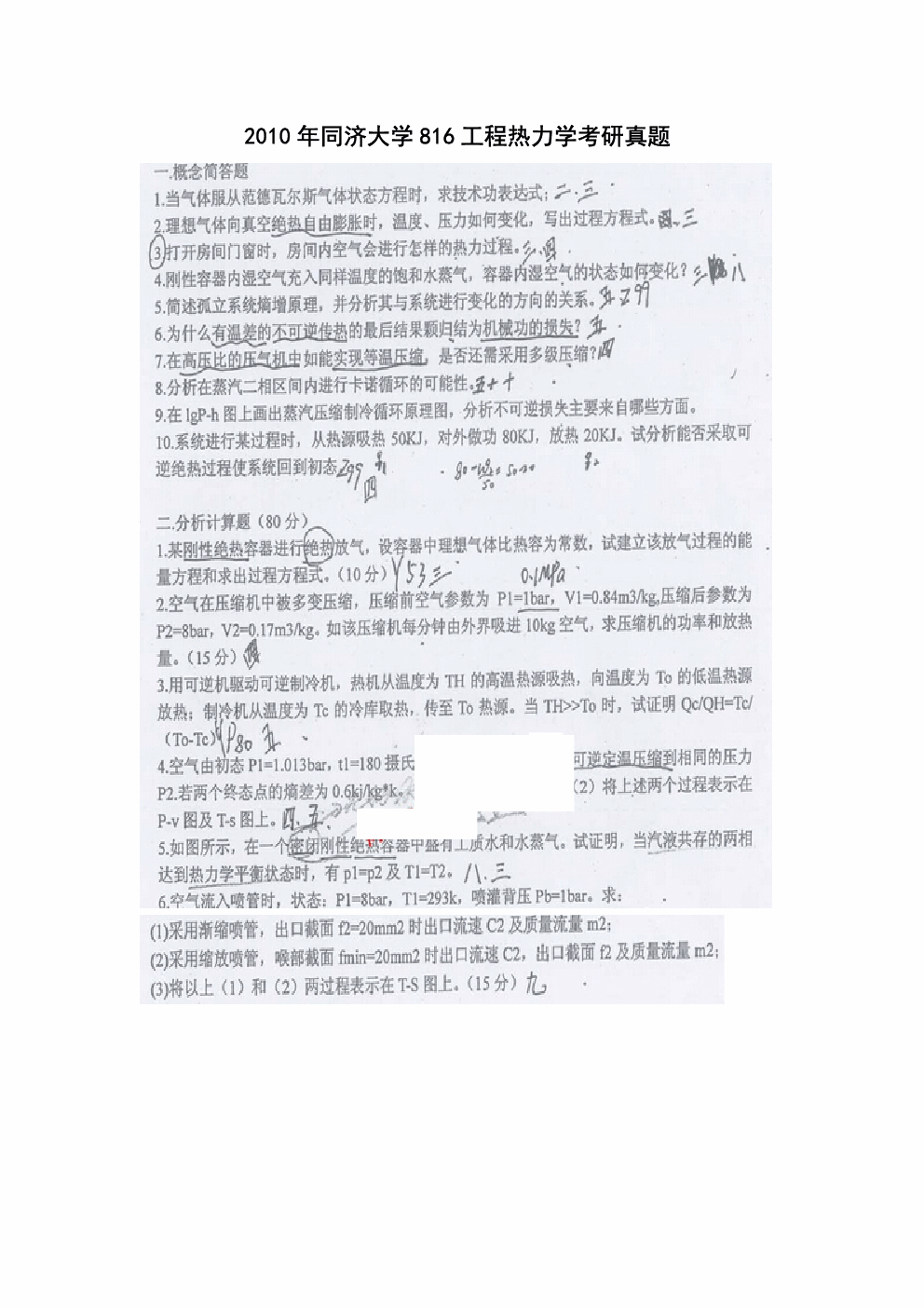 同济大学2014-1998工程热力学816考研真题试题(28)