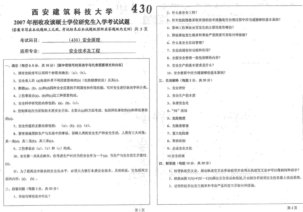 西安建筑科技大学2017-2006安全原理828考研真题试题(18)