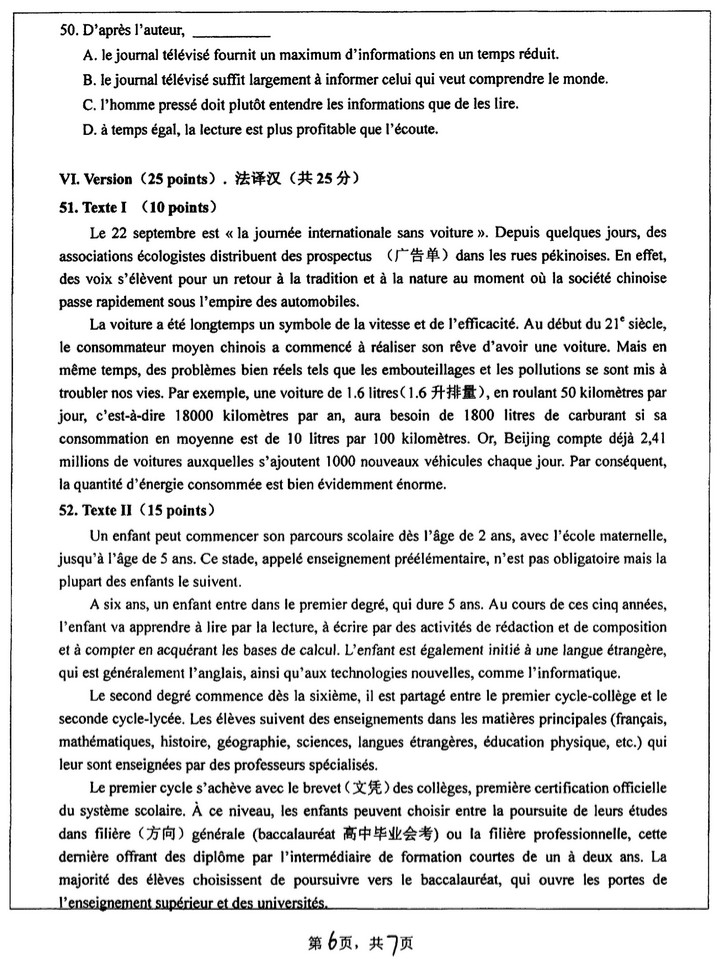2019年湖南师范大学245法语考研真题(6)