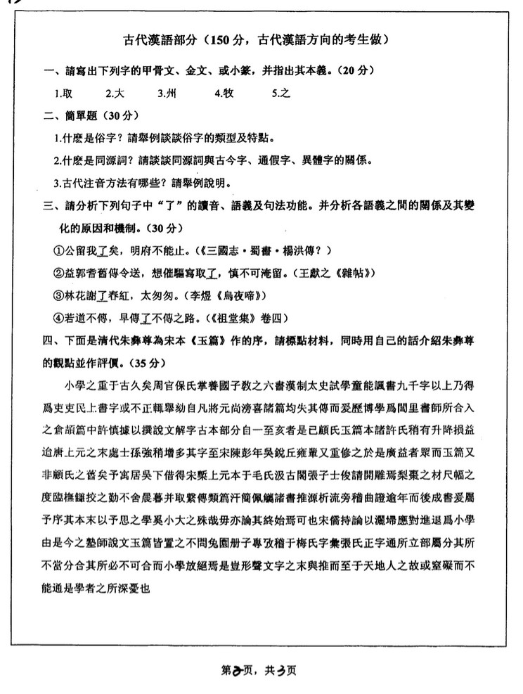 2019年湖南师范大学汉语言文字学专业827古今汉语考研真题(2)