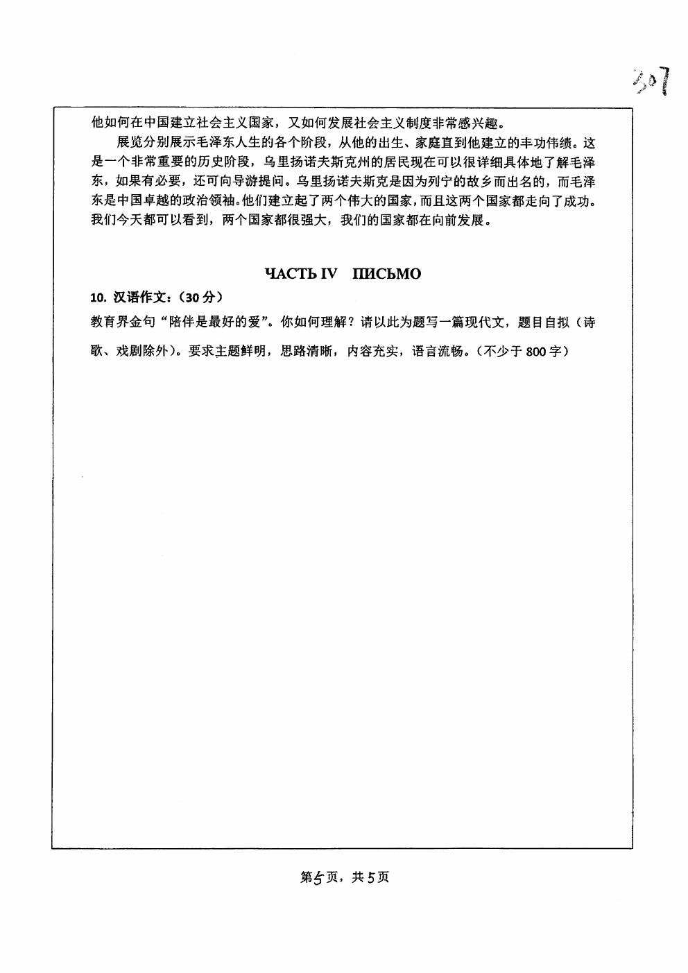 湖南师范大学2019年俄语语言文学专业俄语专业课837考研真题(5)