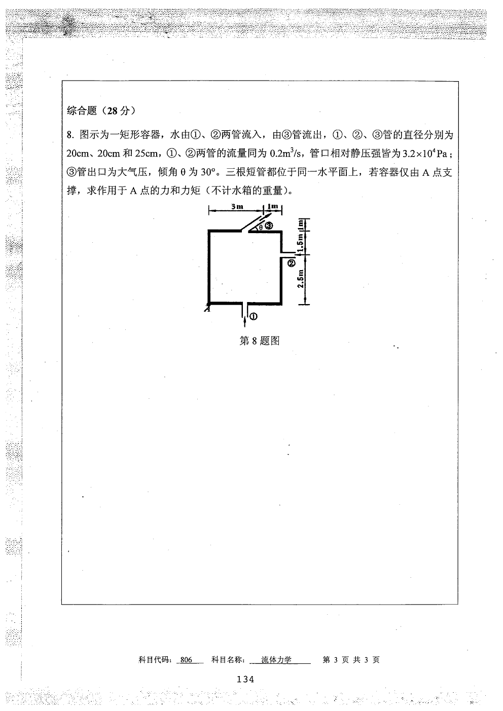 中国矿业大学徐州2017-2014流体力学806考研真题(3)