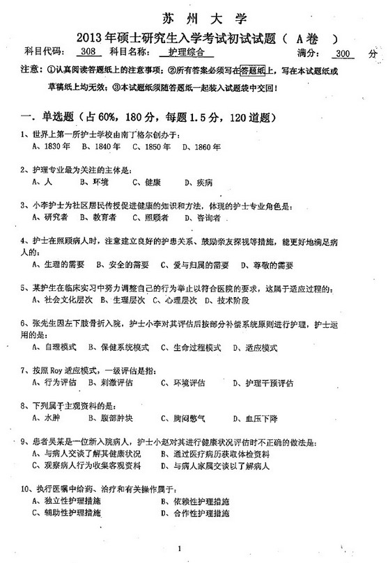 单选多选病理分析 单选比较简单,考察的都比较灵活 多选不难,就是四个答案错一个也不给分,要求对知识点把握的很准确 病理分析,三道题,护理基础比较偏,考了导尿,外科考的消化性溃疡穿孔 内科考的心梗 ...