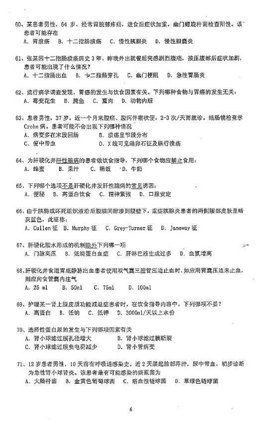 病理分析,三道题,护理基础比较偏,考了导尿,外科考的消化性溃疡穿孔