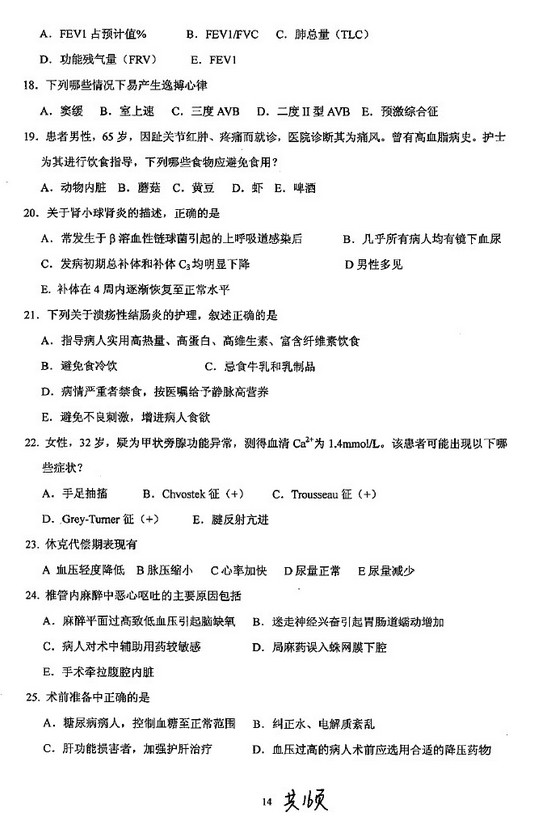 单选多选病理分析 单选比较简单,考察的都比较灵活 多选不难,就是四个答案错一个也不给分,要求对知识点把握的很准确 病理分析,三道题,护理基础比较偏,考了导尿,外科考的消化性溃疡穿孔 内科考的心梗 ...