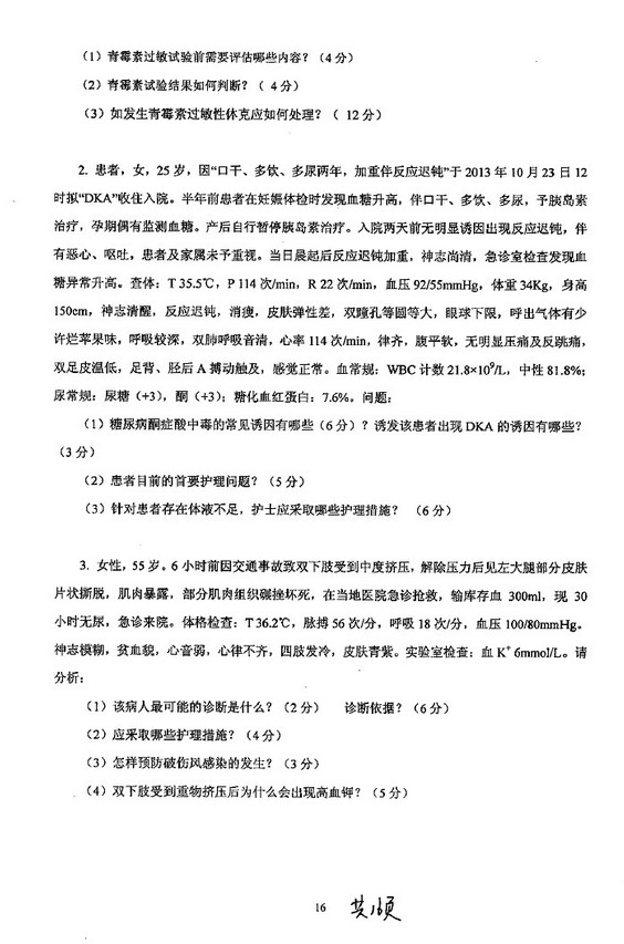 病理分析,三道题,护理基础比较偏,考了导尿,外科考的消化性溃疡穿孔