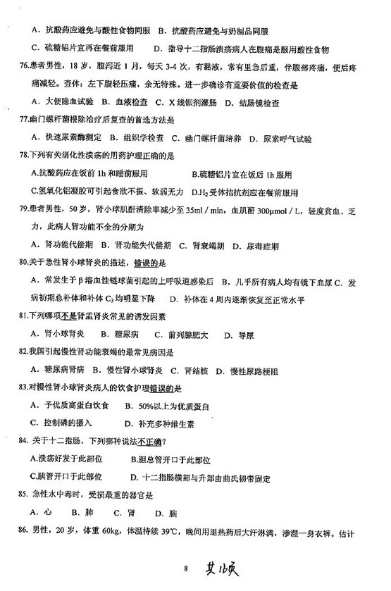 病理分析,三道题,护理基础比较偏,考了导尿,外科考的消化性溃疡穿孔