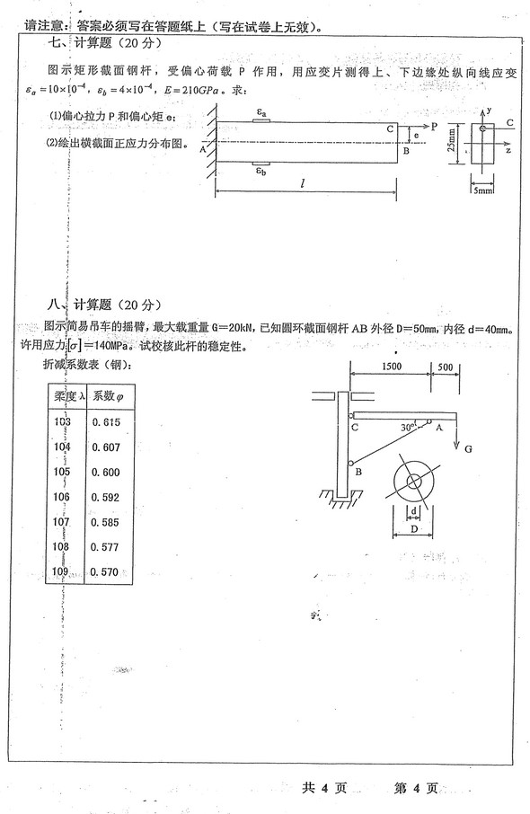 2006-2008年广西大学土木学院材料力学考研真题(4)