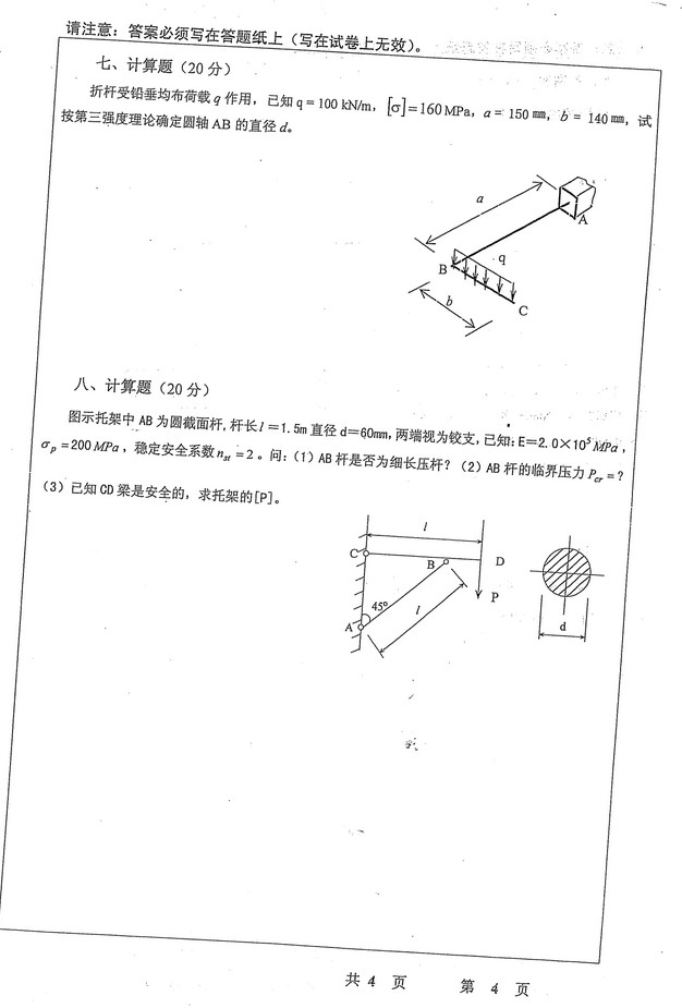 2006-2008年广西大学土木学院材料力学考研真题(8)