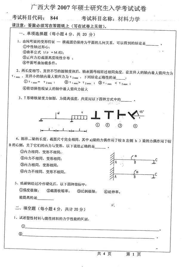• 2009-2011年广西大学土木学院材料力学844考研真题