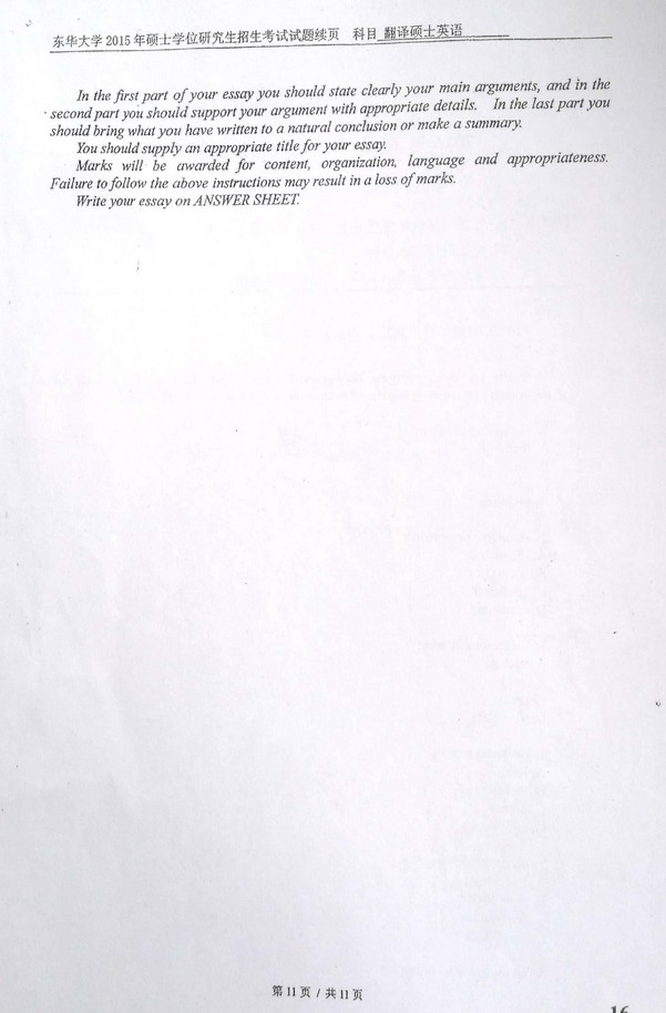 东华大学2015年硕士翻译硕士英语211考试试题(11)