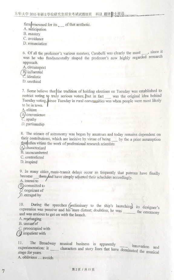 东华大学2015年硕士翻译硕士英语211考试试题(2)