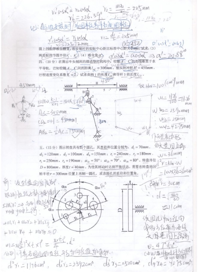 作者: 永恒的黑夜 时间: 2019-12-24 21:59 标题: 2020重庆交大初试机械原理(专硕) 大题10道 1.自由度计算 2.导杆机构的设计 3.求导杆机构的瞬心、角速度之比。 4求导杆机构的极位夹角。 5曲柄连杆的设计 6机构构件加速度,角速度分析 7凸轮机构某从动件确定位置求压力角,从动件速度,推程运动规律等(凸轮轮 ...