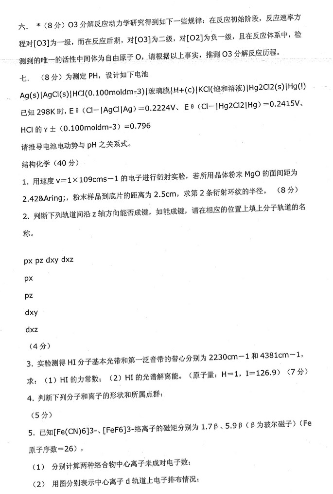 北京大学历年物理化学含结构化学考研真题(2)
