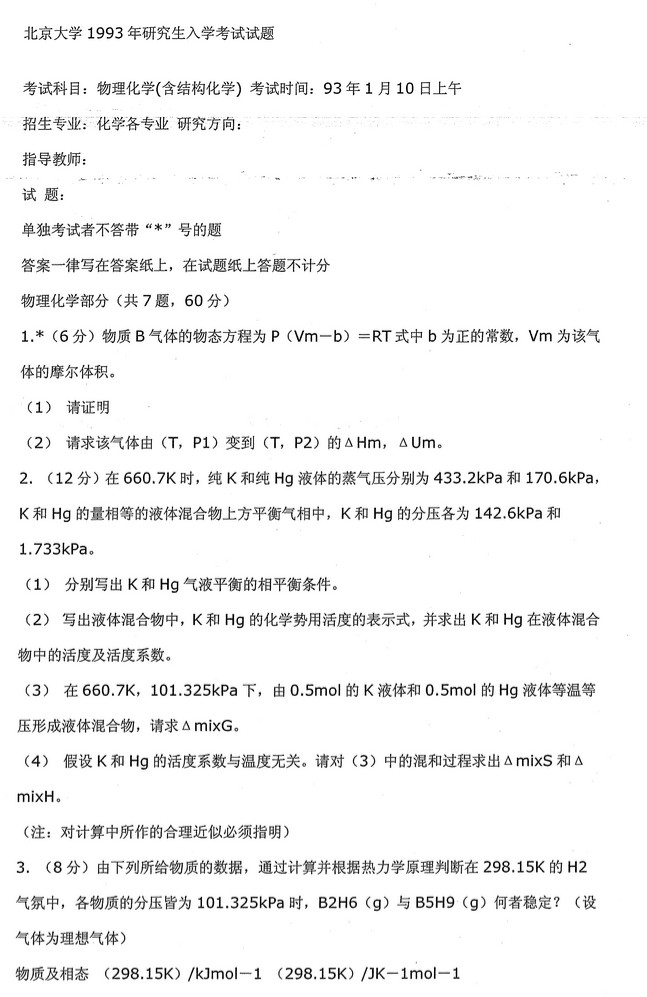 北京大学历年物理化学含结构化学考研真题(3)
